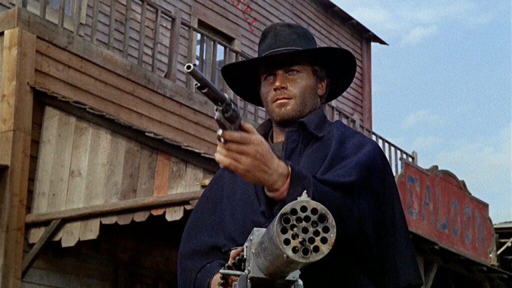 Attenzione, ciò non vuol dire che Leone, Sollima e gli altri autori di western all’italiana non mettessero in scena la violenza – pensiamo al sadismo di Per qualche dollaro in più e alla tortura subita da Eli Wallach ne Il buono, il brutto, il cattivo, oltre alle esecuzioni a sangue freddo di Lee Van Cleef nel medesimo film – ma il carattere distintivo di Corbucci consiste nel mettere in scena la crudeltà in modo esagerato, sanguinario, parossistico, quasi iperrealistico come tutto l’universo rappresentato, con un’esibizione del sangue e della carne che talvolta sfocia persino nello splatter. Basti pensare a una delle prime scene di Django, quando Loredana Nusciak viene legata a due pali e frustata a sangue (letteralmente) sulla schiena da uno sgherro messicano, con inquadrature che insistono sulle scudisciate e sulle ferite lasciate sulla pelle della sventurata.